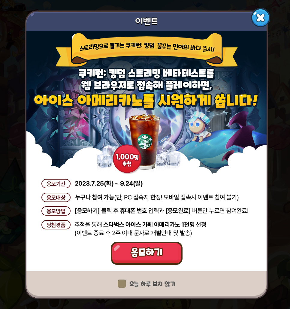 접속해서 플레이하면 스타벅스 아이스 아메리카노 준다고...