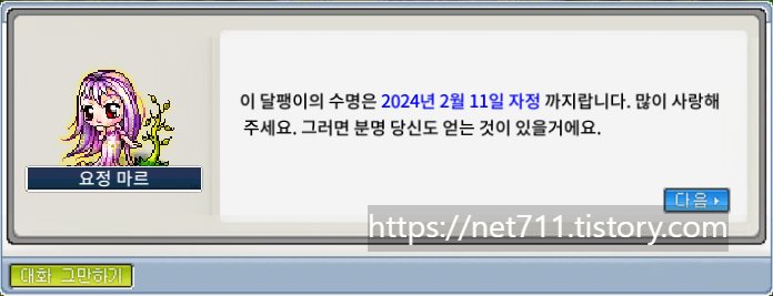 펫은 2월 11일까지 사용 가능한 기간제